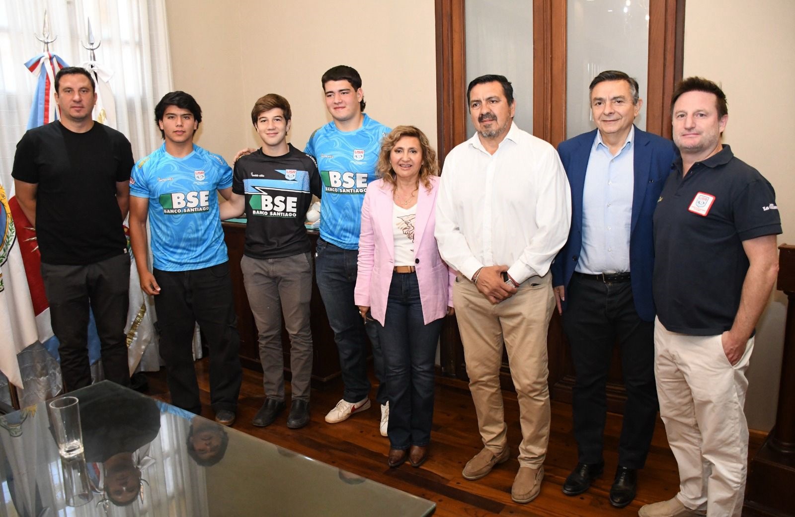La intendente de la Capital, Ing. Norma Fuentes, recibió en el salón de acuerdos de la municipalidad a parte de la delegación de la Selección Santiagueña de Rugby masculino de la categoría Sub 17. Los jugadores estuvieron acompañados por el presidente de la Unión Santiagueña de Rugby (USR), Mario Chazarreta; el vocal, Florent Marcer; el entrenador, Carlos Rafael, y los jugadores Augusto Rímini, Benjamín Kioshi Mishima y Nahir Maus. Tras el encuentro, Chazarreta agradeció a la Ing. Fuentes por “estar siempre presente y además por darle lugar al rugby dentro…