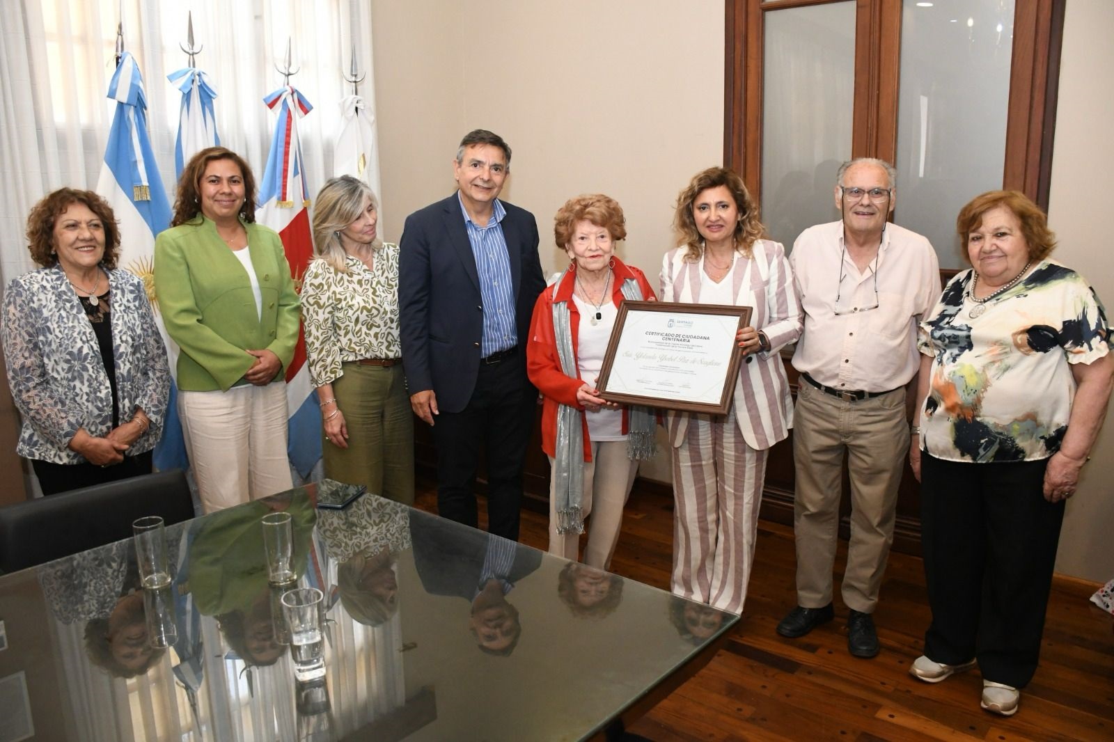 La intendente de la Capital, Ing. Norma Fuentes, homenajeó a Yolanda Paz de Scaglione con la distinción de “Ciudadana Centenaria” por haber cumplido los 100 años de edad el pasado 5 de noviembre. La vecina asistió al reconocimiento acompañada por Aldo Herrera y Nena Marcos. También estuvieron presentes el secretario de Gobierno, Nestor Machado; la subdirectora de la Tercera Edad, Nélida Martínez y la referente de los jubilados, Reina Castillo. La jefa comunal valoró a la jubilada “por su ejemplo de fortaleza y su enorme contribución a la comunidad, que…