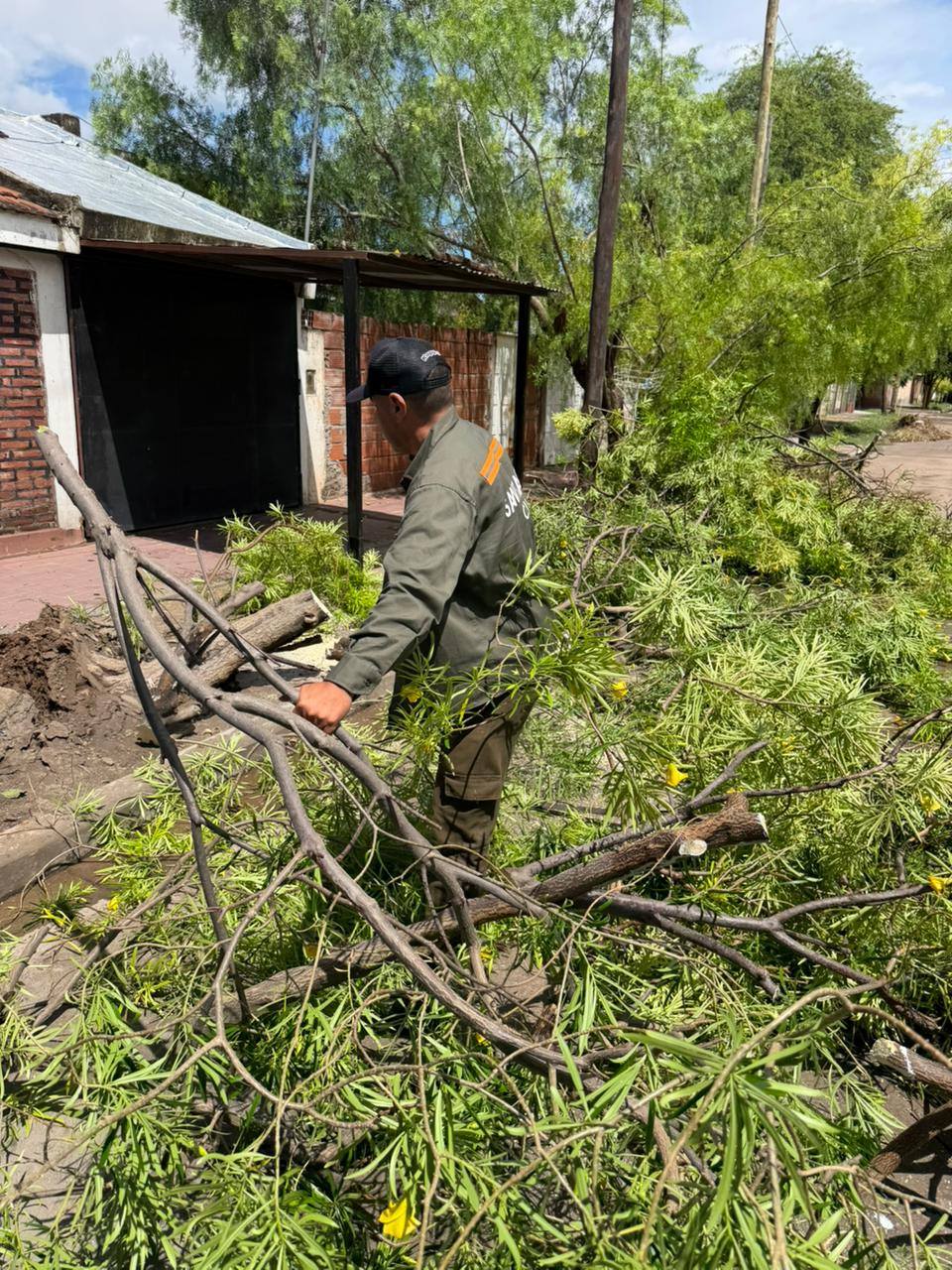 Durante la jornada del jueves el personal de Defensa Civil de la Municipalidad realizó trabajos para despejar la vía pública de árboles caídos en calles Magallanes casi Moreno y sobre calle Corrientes.